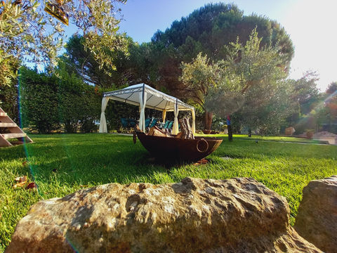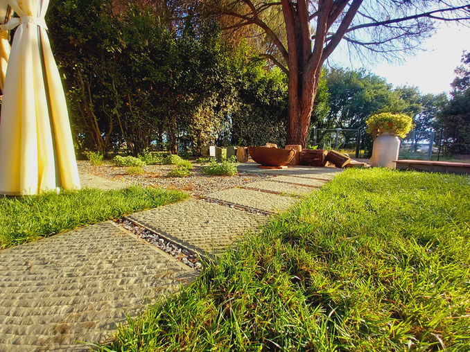 The property is surrounded by a green equipped garden and a very large pine forest.